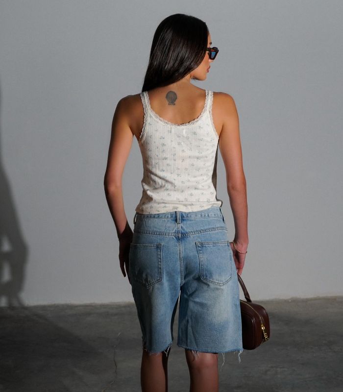 גופיית בייסיק פרחונית עם תחרה עדינה במחשוף, בגזרה צמודה ומחמיאה. הגופייה מגיעה בוואן סייז ובצבעים תכלת וורוד.