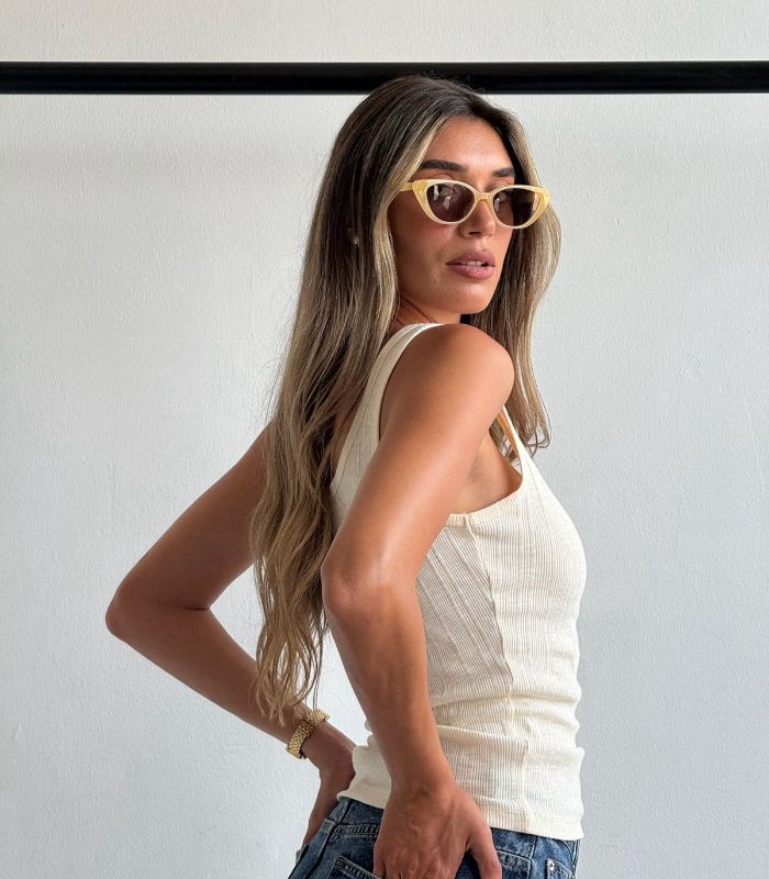 גופיית אלבי – הגופייה המושלמת לקיץ! עשויה בד ריב נעים, עם מחשוף מחמיא וחתך לב קטן ומיוחד שהופך אותה לפריט ייחודי. זמינה בוואן סייז.