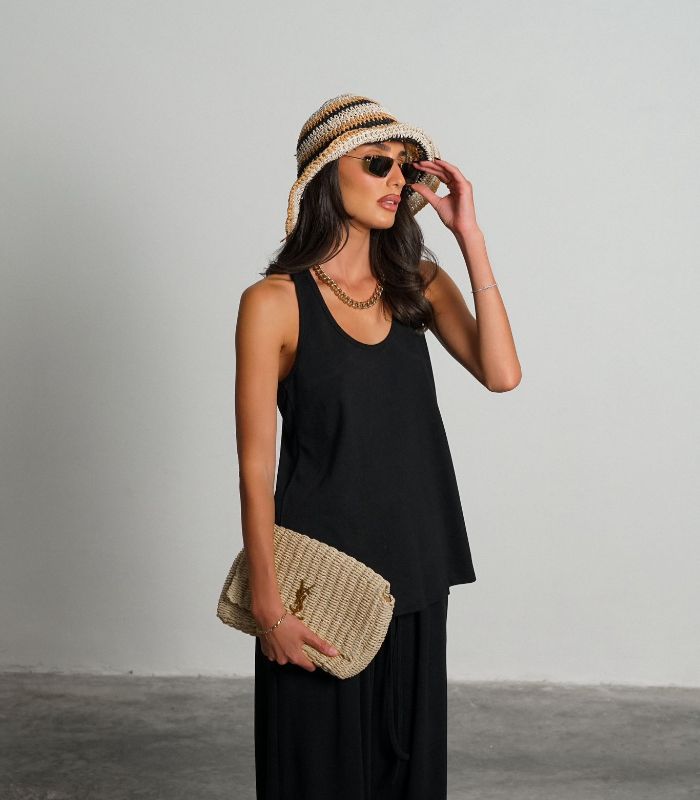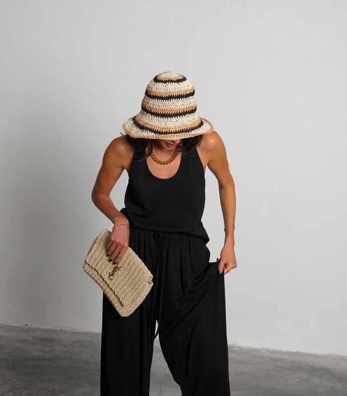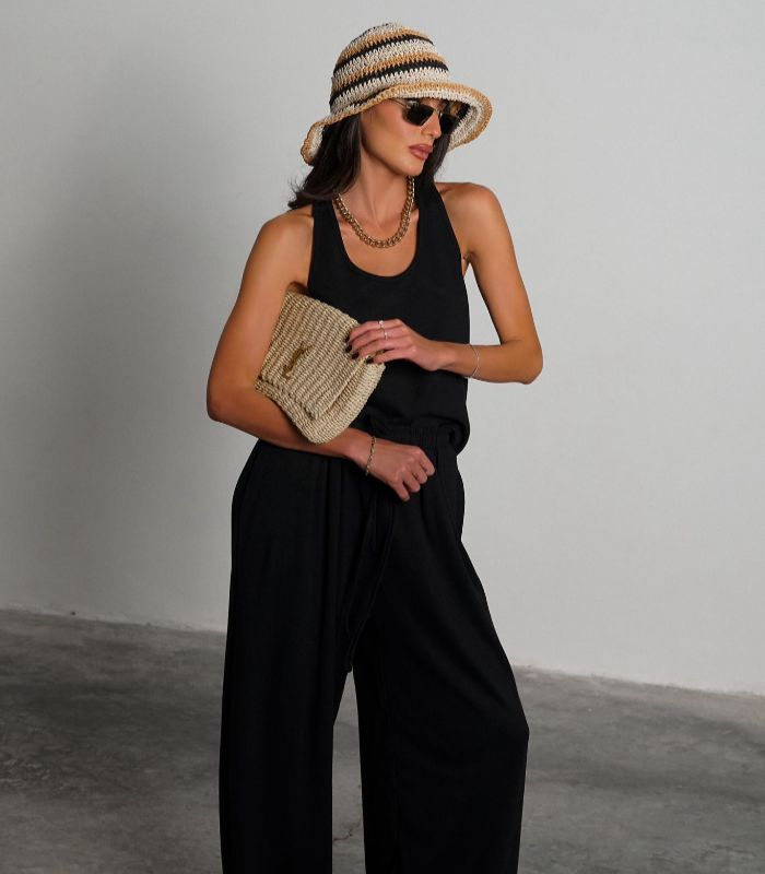 חליפת פנאי נוחה וקלילה המורכבת מגופיית בייסיק ומכנס ארוך . החליפה מגיעה במידות S, M, ו-L